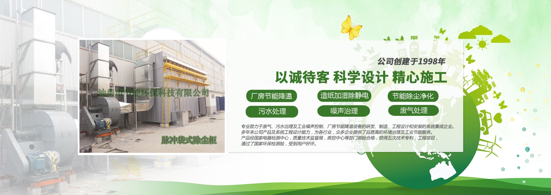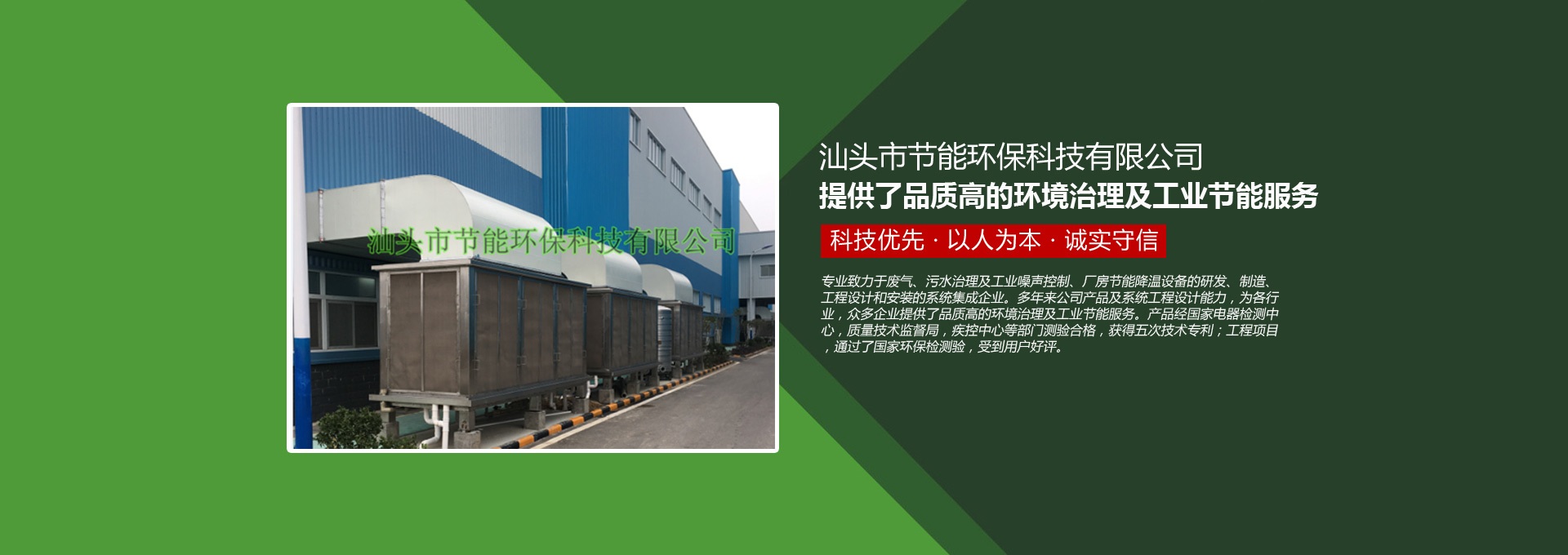 汕頭市節能環??萍加邢薰緞摻ㄓ?998年,是一家專業致力于廢氣、污水、粉塵、噪聲治理,廠房節能降溫設備的研發、制造、工程設計和安裝的系統集成企業。多年來公司產品及系統工程設計能力,為各行業,眾多企業提供了品質高的環境治理及工業節能服務。產品經國家電器檢測中心,質量技術監督局,疾控中心等部門測驗合格,獲得五次技術專利;工程項目通過了國家環保檢驗檢測,受到用戶好評。